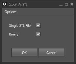 Binary | STL can be saved as a text file or in binary. Check this option to save the smaller binary variant. |
